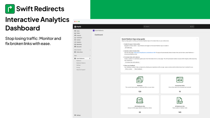 Ready to stop SEO leakages and improve customer experience the smart way? Install Swift Redirects today and take control of your store’s broken links—once and for all.
